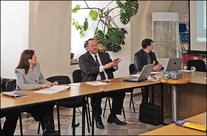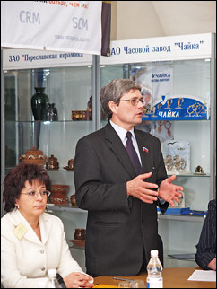 Открыл семинар директор департамента инвестиций ЯТПП Комаровский Н.И. и, представив его организаторов и участников, передал слово депутату Ярославской областной Думы, председателю координационного совета по внедрению ОАО «Компания Славич» Дыме А.М.
