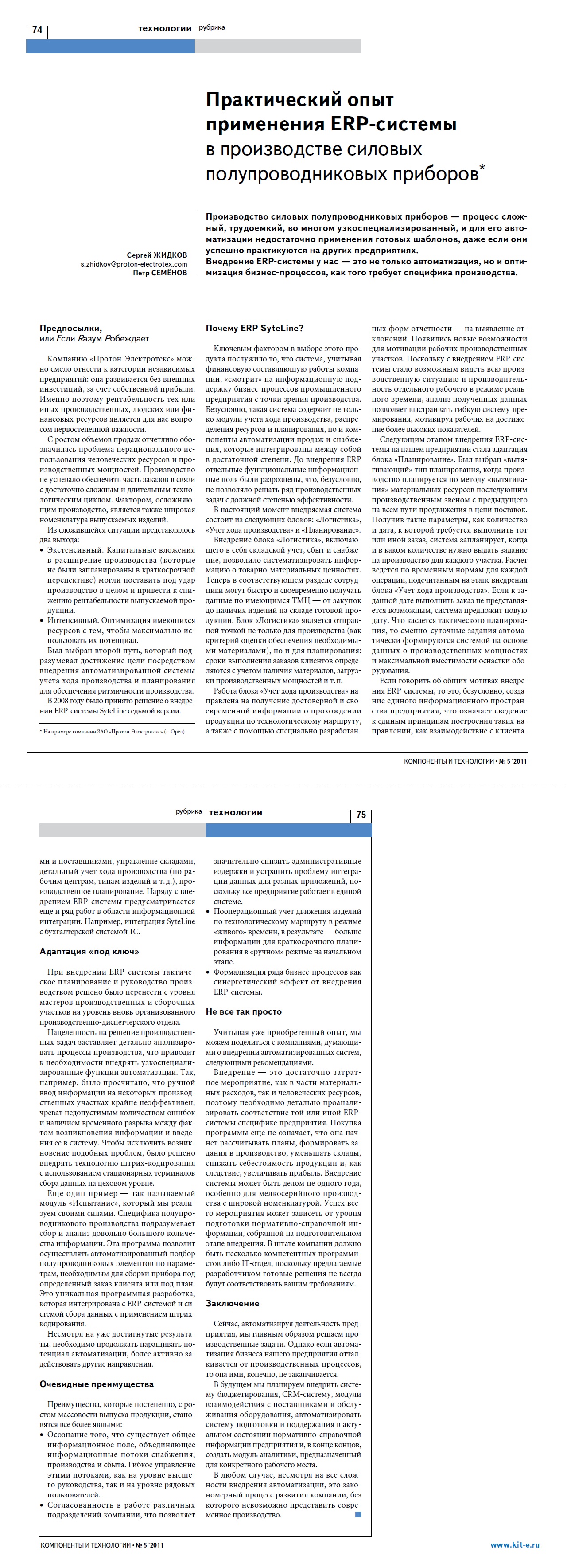 Статья Жидкова С. и Семенова П. "Протон-Электротекс" в журнале "Компоненты и технологии" № 5' 2011